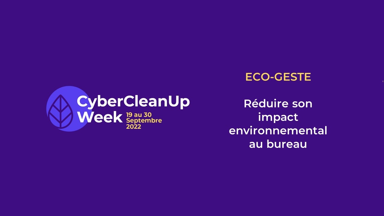 En tant qu’Entrepreneur du NumĂ©rique Responsable, nous devons montrer l’exemple et agir pour limiter notre impact sur l’environnement. Cette nouvelle Ă©dition de la « Cyber Cleanup Week » est l’occasion d’apprendre les bons gestes, au quotidien, qui peuvent contribuer Ă rĂ©duire notre empreinte environnementale. Le bureau : un lieu de vie et de partage Vous passez environ 200 jours par an au bureau. Informatique, chauffage, climatisation, dĂ©placements, mĂ©nage des locaux…,