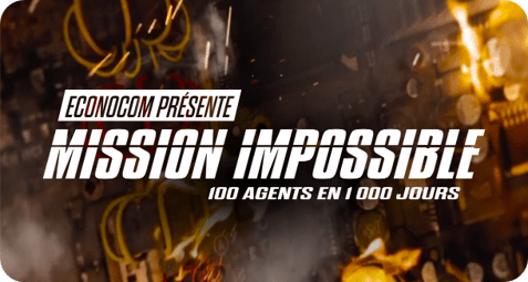 Mission Impossible ? Pas pour nous ! Nous sommes Ă Marbella lors de lâEMM Econocom de Novembre dernier. Câest alors quâinterviennent Jean Louis Bouchard, HĂ©lĂšne Lory Delambre et Chantal De Vrieze. Chapeaux vissĂ©s sur le crĂąne et lunettes de soleil noires sur le nez, ces agents trĂšs spĂ©ciaux disruptent la prĂ©sentation en cours pour Ă©voquer un pilier fondamental du plan stratĂ©gique One Econocom : le projet Mission Impossible.