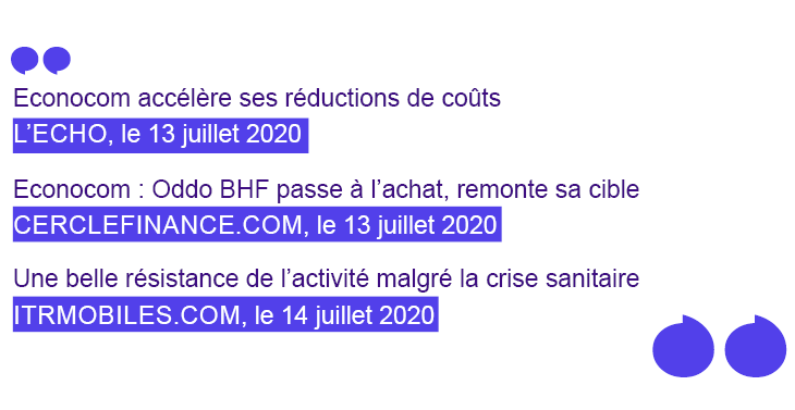 - Nous avons ainsi pu confirmer l’amélioration de notre rentabilité opérationnelle (Résultat Opérationnel Courant attendu autour de 43 millions d’euros contre 38,5 millions d’euros au 1er semestre 2019) ; notre résultat net du semestre est attendu largement bénéficiaire ;