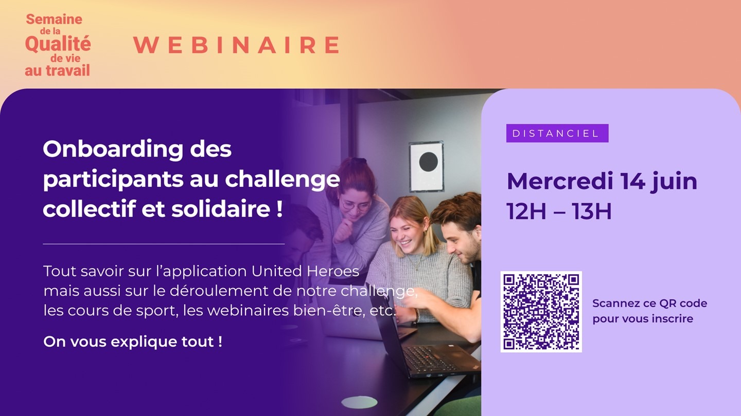 Les équipes RH vous ont concocté un programme exceptionnel du 19 Juin au 2 Juillet 2023. Nous participerons à un challenge collectif et solidaire, en partenariat avec United Heroes et Decathlon, avec notamment : une application dédiée, un challenge connecté par équipe, des cours de sports, des webinaires bien-être et de nombreuses animations tout au long de ces deux semaines.