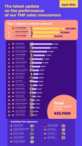 We are pleased to share the new edition at the end of April on the TMF salesforce recruitment plan progress. As in the precedent edition, we would like to praise the performance of our new joiners.