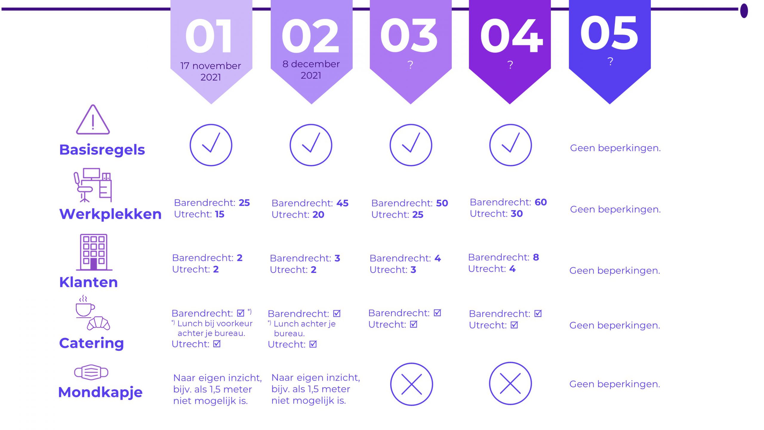 Als jij je eigen verantwoordelijkheid neemt en je aan bovenstaande richtlijnen houdt, dan voorzien we geen verdere beperkingen in het aantal beschikbare werkplekken gedurende deze herfst-/ winterperiode. Reserveren in Mapiq blijft een vereiste. Blijf gezond!